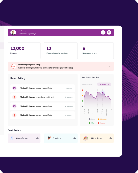 With Prosecare, Patients can log their side effects as they occur, ensuring no detail is forgotten. Direct and constant communication with healthcare providers helps patients feel supported and understood.